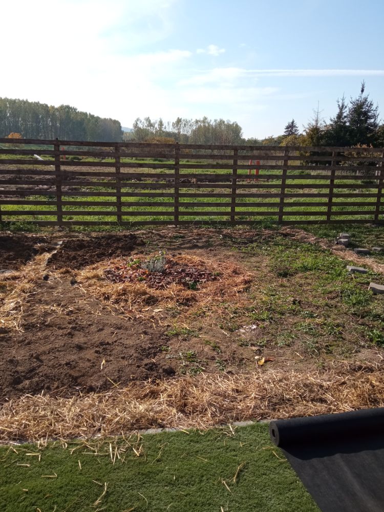 Ágyások kialakítása, a kerti utak szalmázása