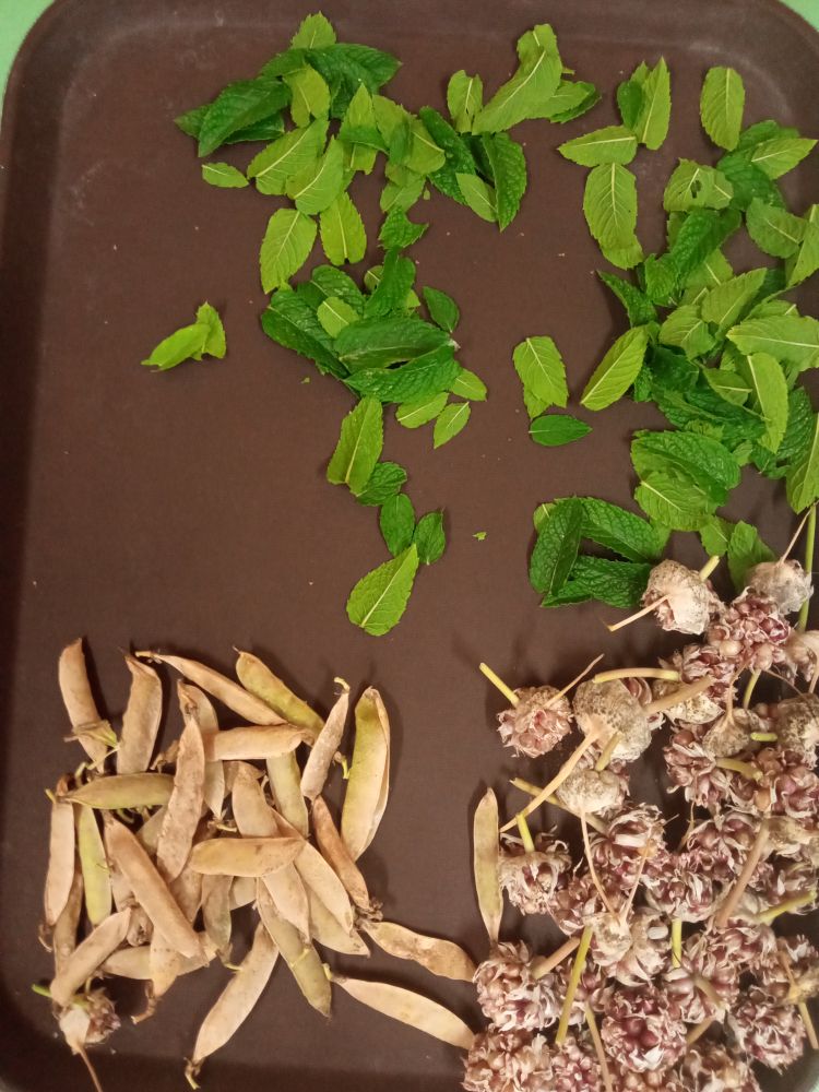 Menta, citromfű szárítása, borsó, fokhagyma mag gyűjtése, szárítása veteményezéshez